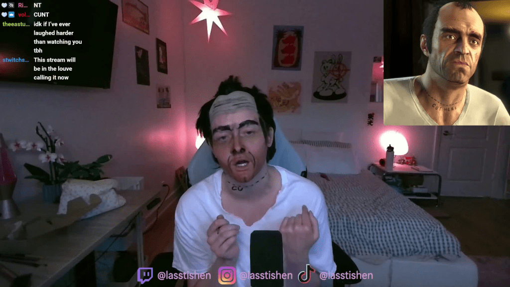 Lass is a GEM! She streams every weekday and often dresses as the character she’s playing as. When I first found her, she was cosplaying Trevor on GTA. It stopped me in my scroll and made me actually laugh out loud. Lass plays a lot of different games and never disappoints. Super interactive with her community and encourages everyone to be their authentic self, as she is on stream. She recently had her birthday stream and it was so wholesome and is a great stream to rewatch if you’re just getting to know her style of humor. I’m so excited for her continue to grow because she deserves it! At the time of writing this, she streams weekday evenings.